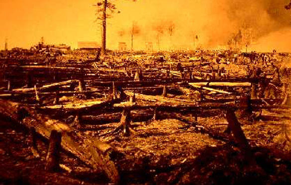 The result was huge, unnatural forest fires that killed the seedlings and hundreds of people -- the Hinckley fire, the Cloquet fire, and others.